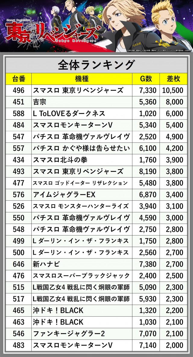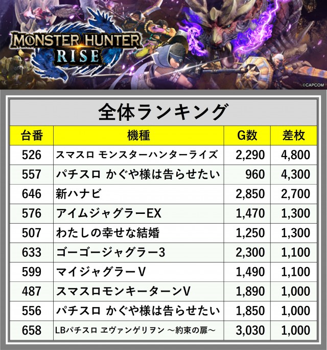 厳選された取材対象機種をはじめ、その他スロット全体から好記録が飛び出した!プレイヤーが楽しんだ1日を下記データにて振り返ってみて欲しい。