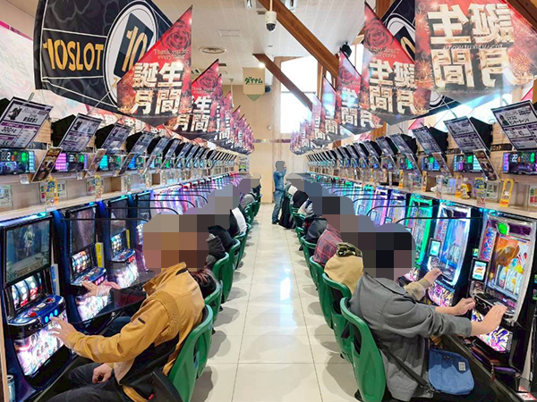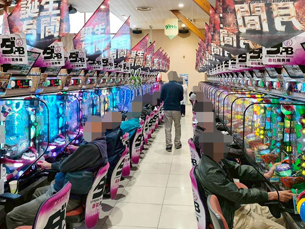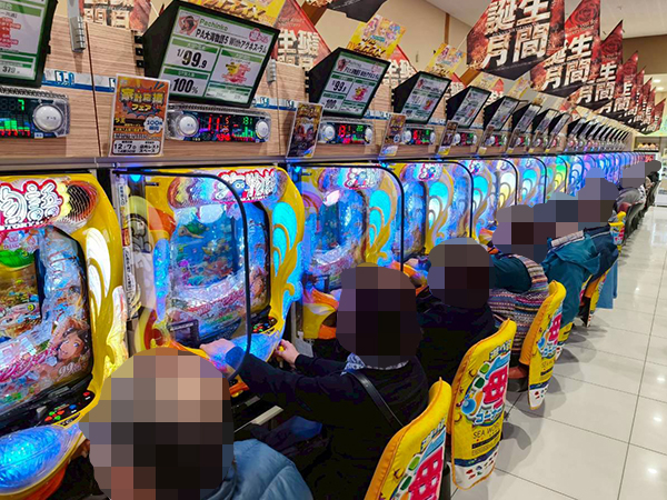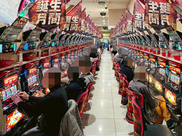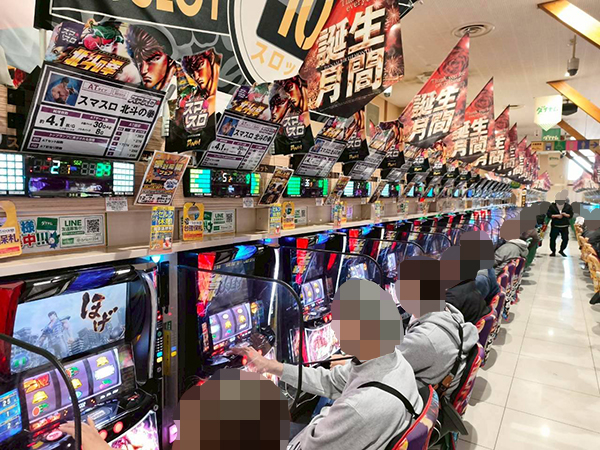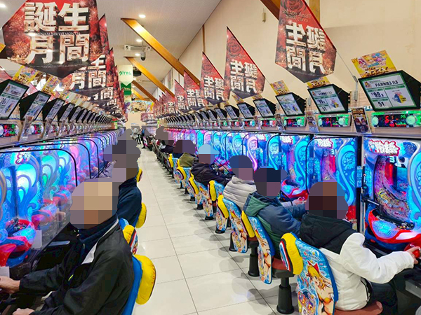 取材時は既に多くのプレイヤーが集結し、パチンコ・パチスロを問わずにぎやかな状況となっていた。