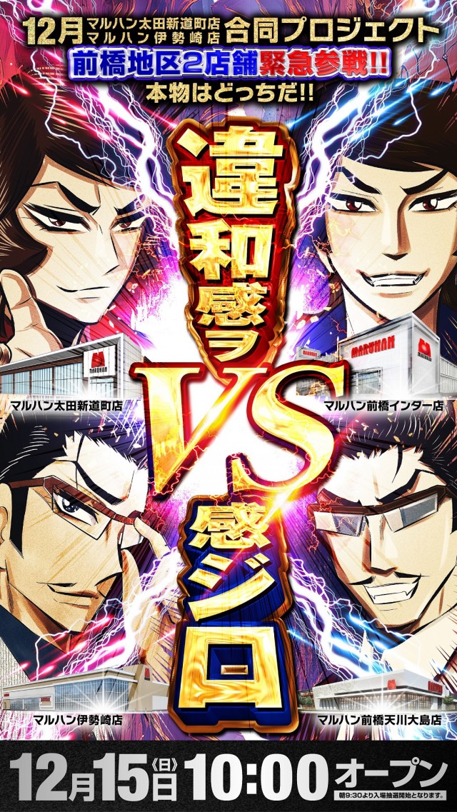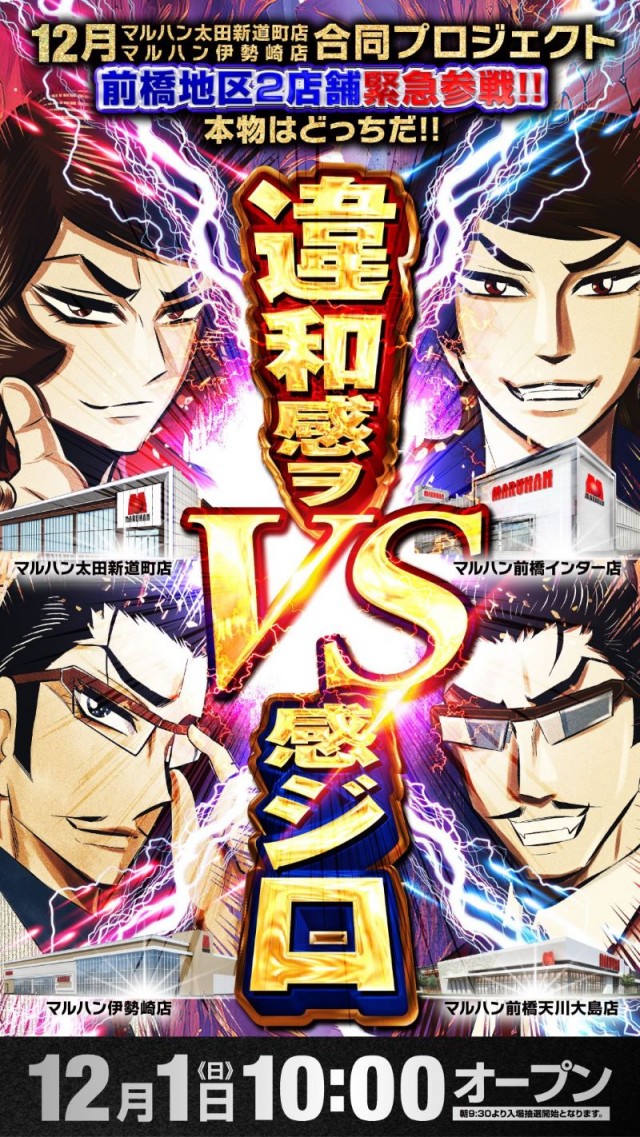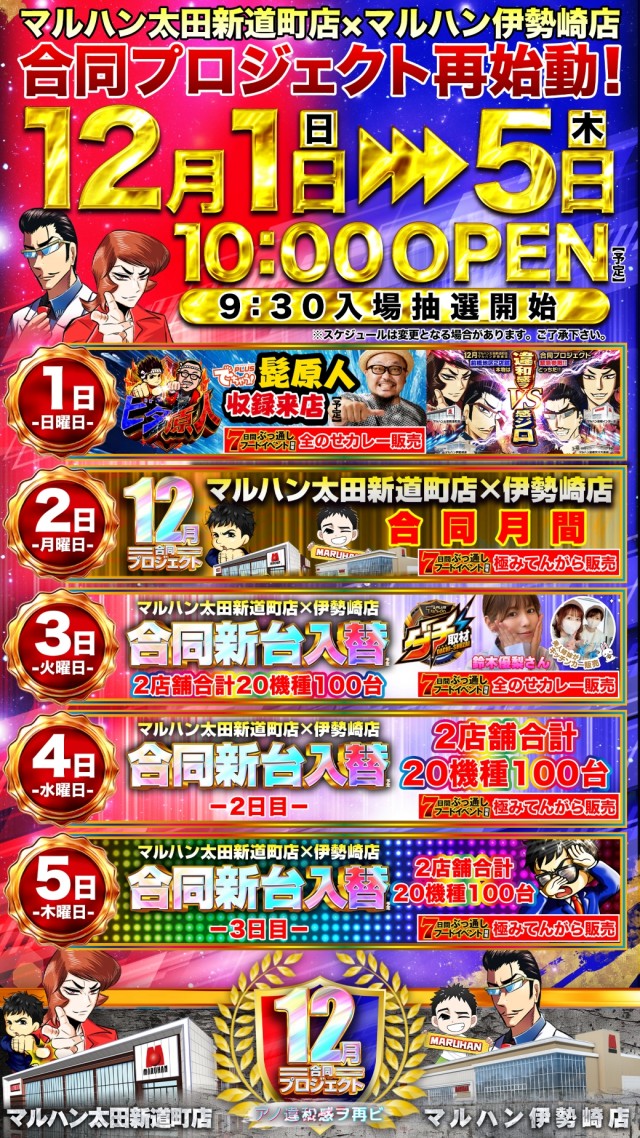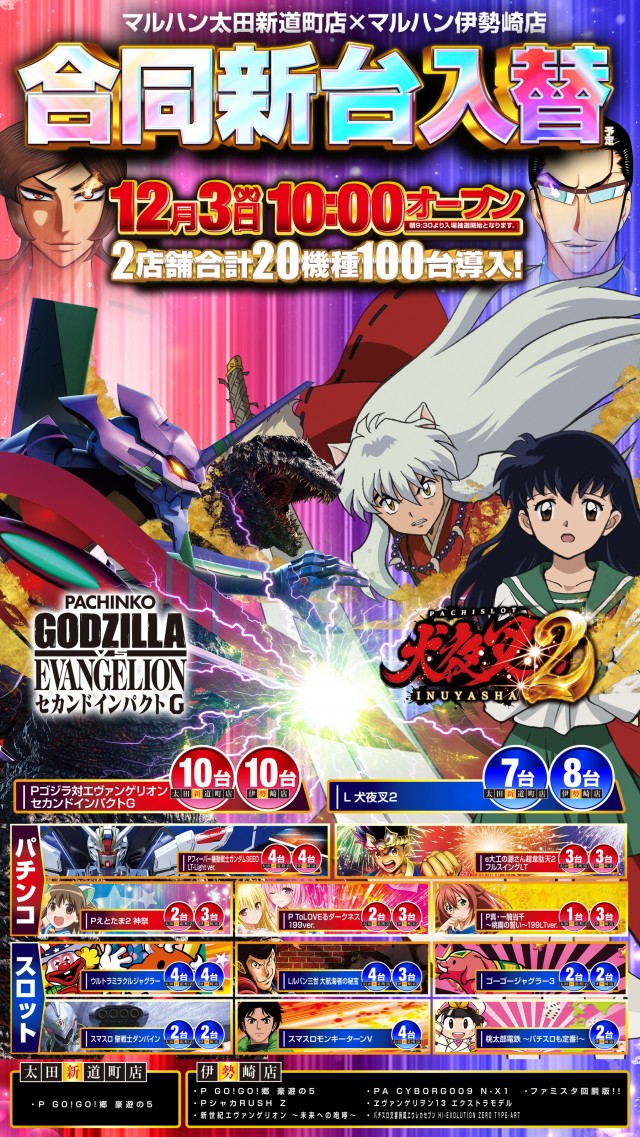 明日12月3日(火)太田新道町店×伊勢崎店 合同新台入替予定