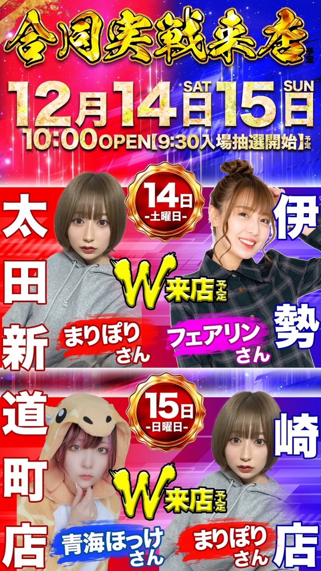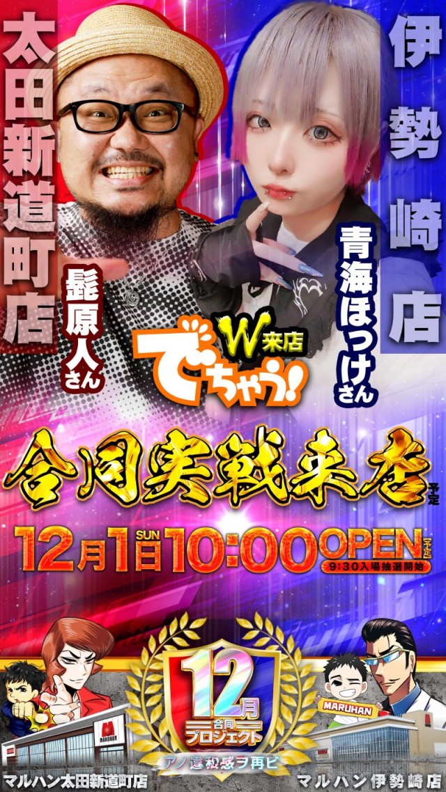本日12月3日(火)太田新道町店×伊勢崎店 合同新台入替予定