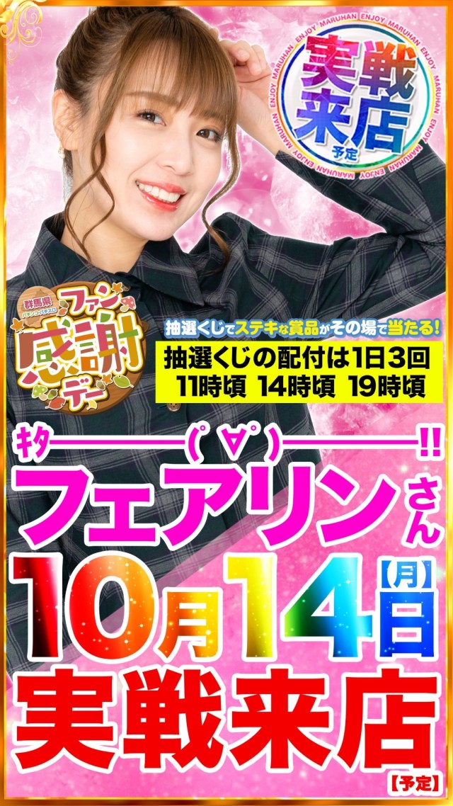 本日フェアリンさん実戦来店予定!全国ファン感謝デーも開催中!