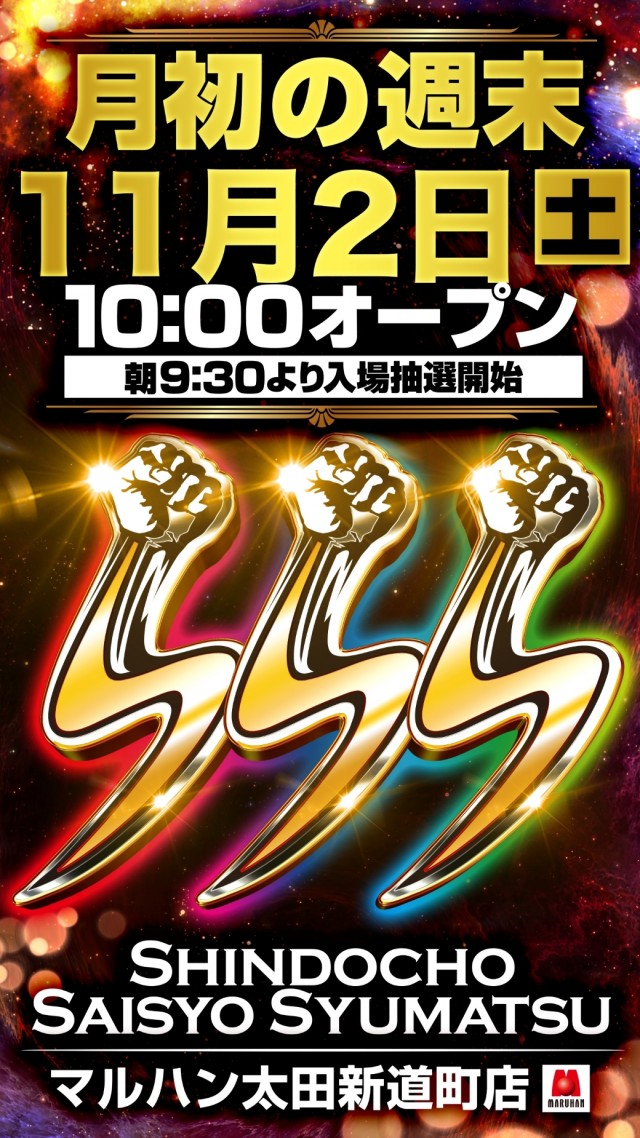 11月11日(月)群馬マルハン全店10時オープン