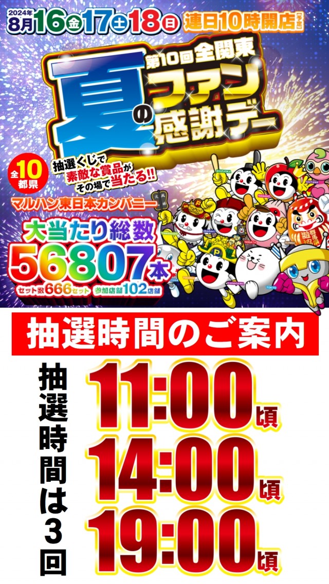 本日16日から3日間!!全関東夏のファン感謝デー開催!!