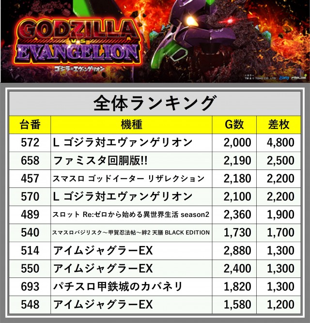 厳選された取材対象機種をはじめ、その他スロット全体から好記録が飛び出した!プレイヤーが楽しんだ1日を下記データにて振り返ってみて欲しい。