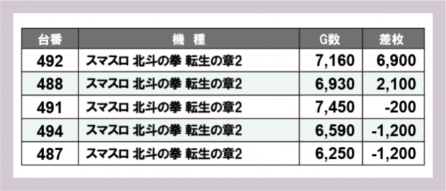 ※差枚数順に掲載しています