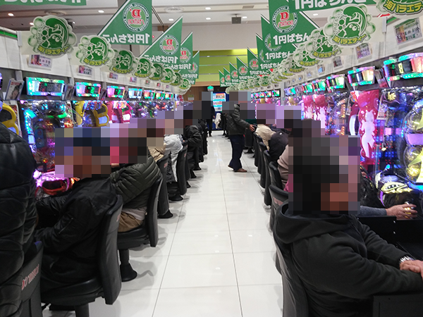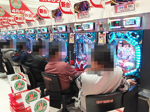 また、パチスロの低貸し玉コーナーもたくさんのプレイヤーでにぎわっていた。