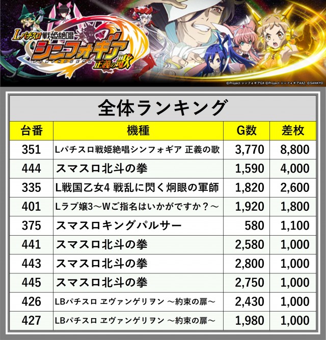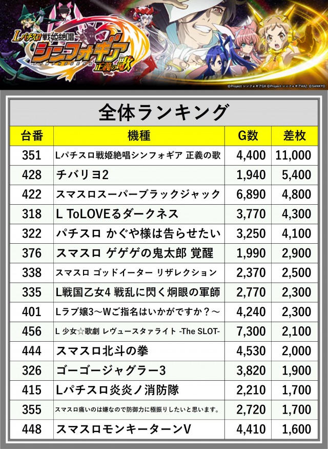 厳選された取材対象機種をはじめ、その他スロット全体から好記録が飛び出した!プレイヤーが楽しんだ1日を下記データにて振り返ってみて欲しい。