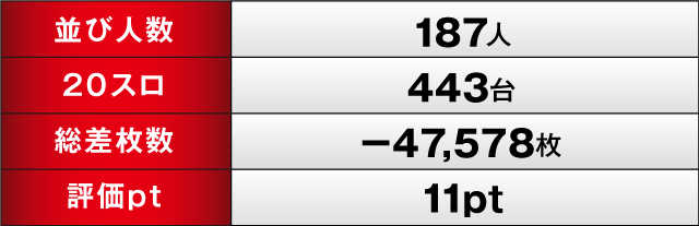 優秀台の活躍はあったものの、パチスロ全体では-47,589枚という結果に。残念ながら、リニューアル初戦をプラスで飾ることはできなかった。この口惜しさは次回に晴らすとしよう。
