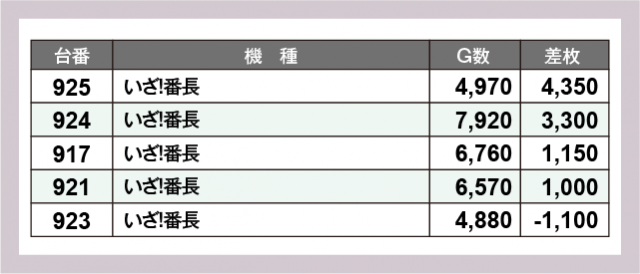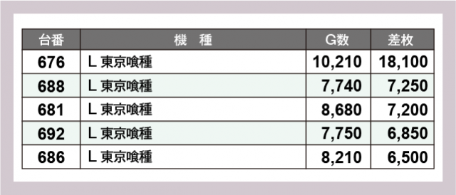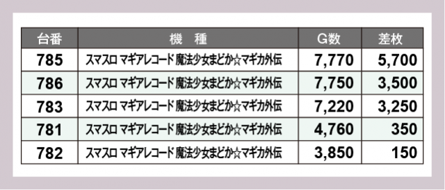 ※差枚数順に掲載しています