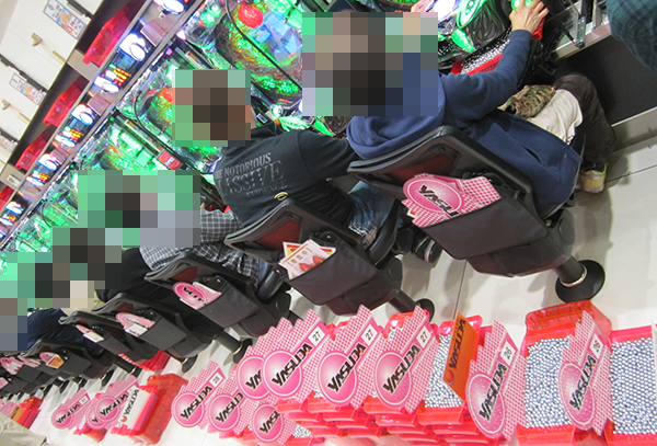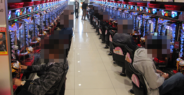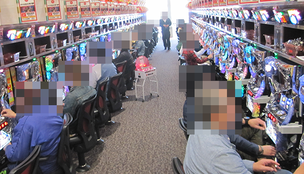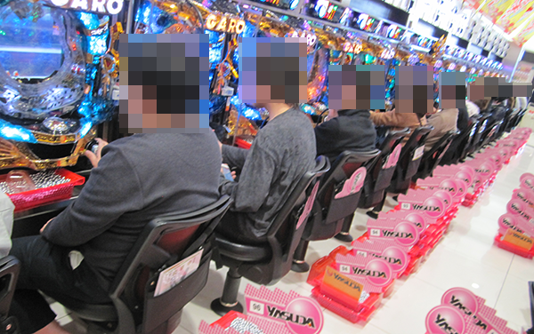 16時頃になると、とくにパチンコの盛り上がりを感じられ、4円パチンコの「CR牙狼 魔戒ノ花」や「ぱちんこCR真・北斗無双」に空き台はほとんど見当たらない。