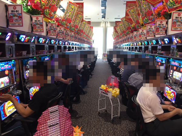 AT・ART機を含めて、さまざまな場所に笑顔があるなかでも、とくに稼働率の高いジャグラーシリーズで実戦をすることに決めた。