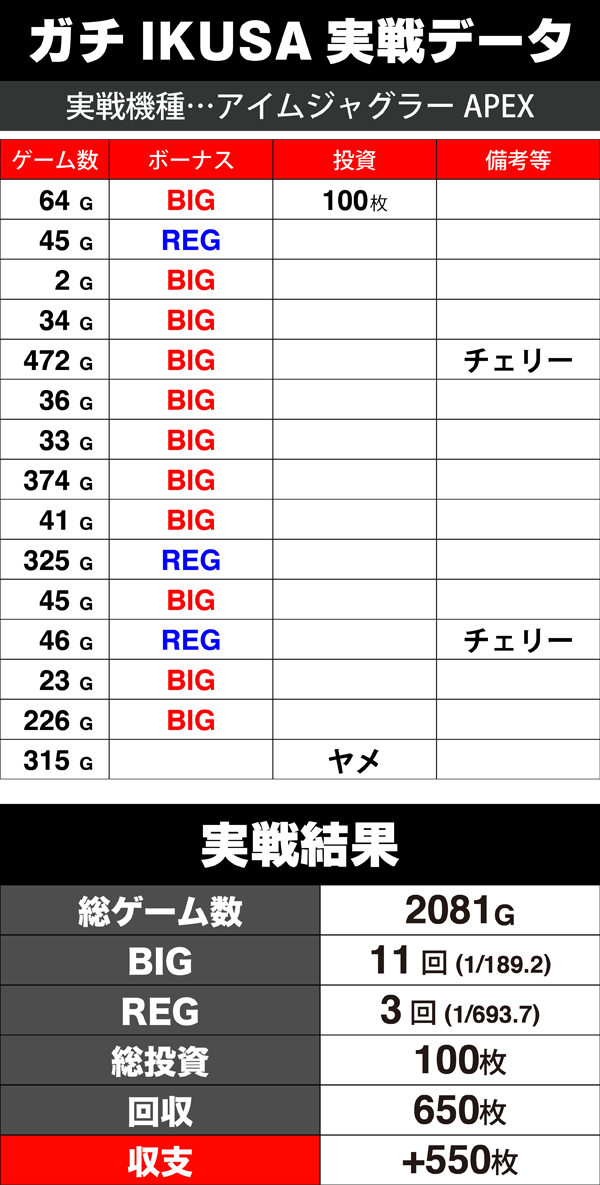 しっかりと差枚がプラスとなり、「やすだ前橋店」での立ち回りは、完璧といえるだろう。