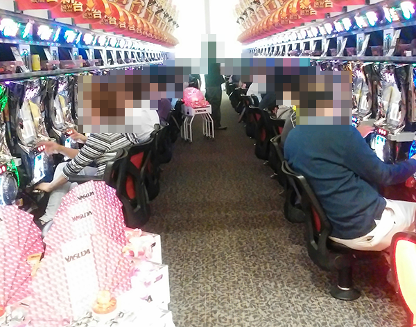 また、1円パチンコも空き台がほとんど見当たらないといった状況。パチンココーナー全体が活気に包まれているようであった。