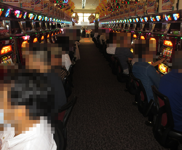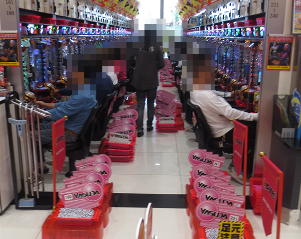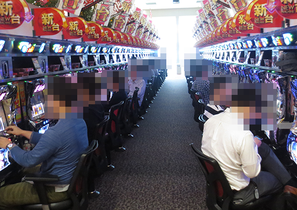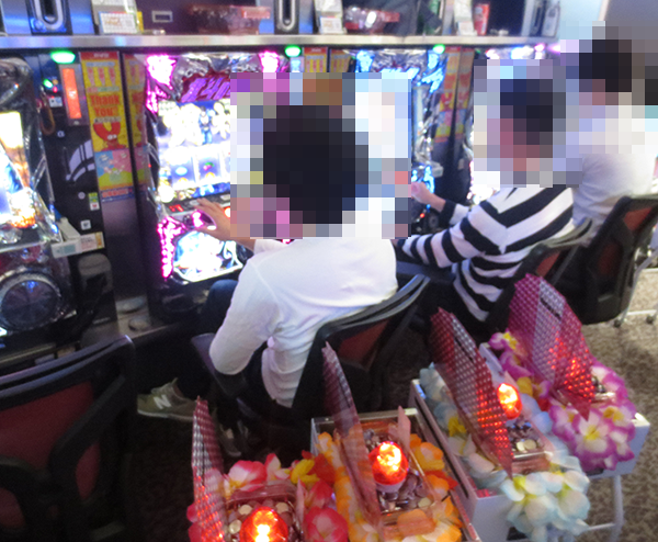 午後の20円パチスロでは、「パチスロ北斗の拳 修羅の国篇」や「バジリスク~甲賀忍法帖~絆」に機種の性能を最大限まで引き出しているといったプレイヤーが多く、シマ内に華やかな光景が広がっていた。