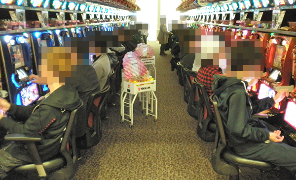 龍の気配が感じられるホール内をのぞいてみると、大勢のプレイヤーが遊技を楽しんでいた。