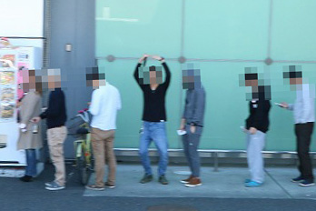 | 列の長さは前回を上回るほど!並ぶファンも、両手で「○」を作ってアピールするほどの |