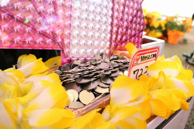 パチスロフロアでは、ドル箱が爽やかなパステルカラーの花々に囲まれる!!