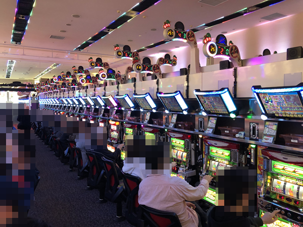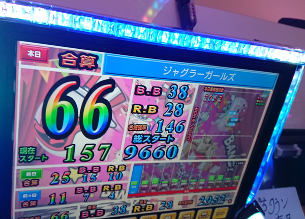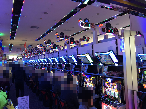 たくさんのプレイヤーと一緒に入場した朝イチは、実戦機種に「ジャグラーガールズ」をチョイス。