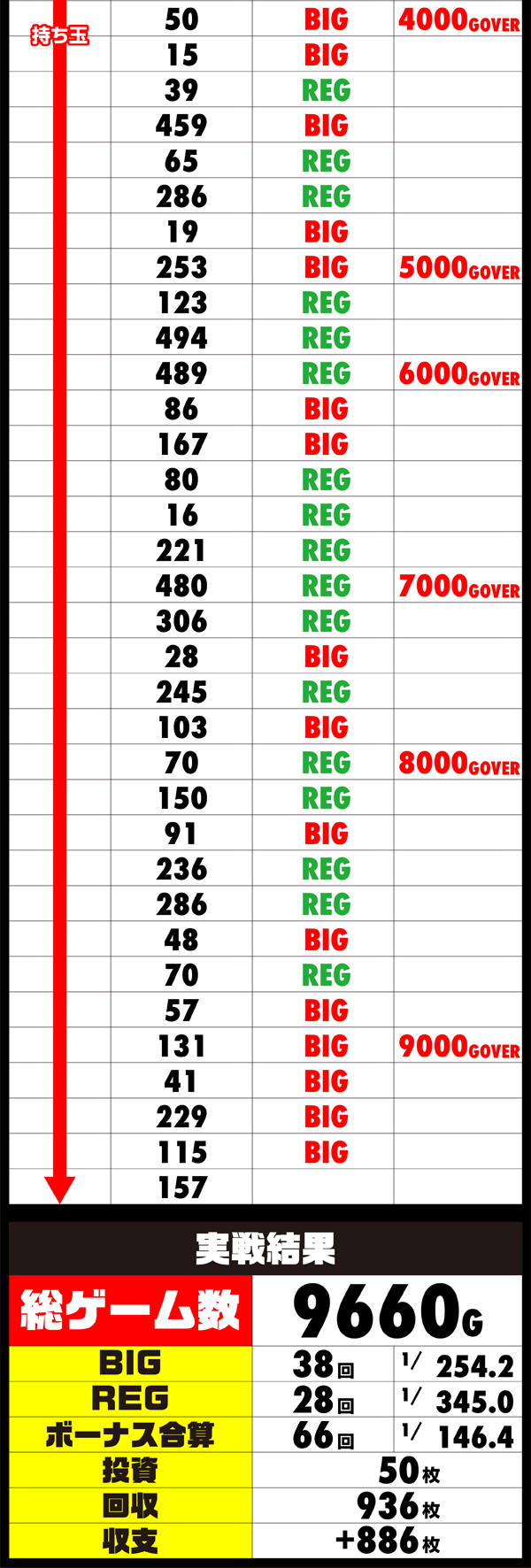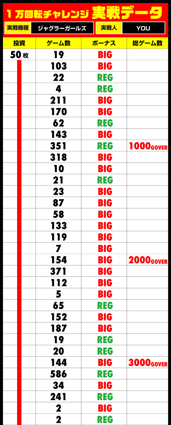ボーナスの消化によるタイムロスが成功の障害となり、後半になっても消化スピードはあがらず。