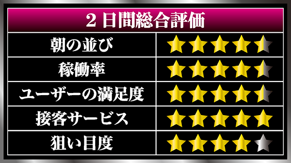 開店時からホールスタッフの大きな声に出迎えられて、プレイヤーたちも気分良く遊技をはじめていたようだ。