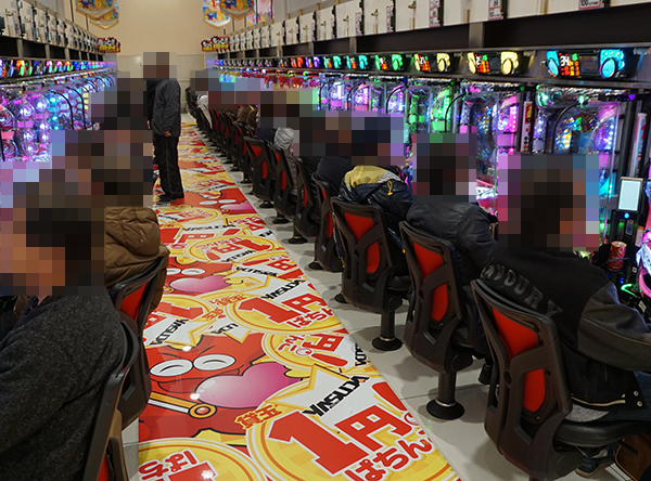 1円パチンコに対する支持も厚く、空き台がほとんどみあたらないといった状況。