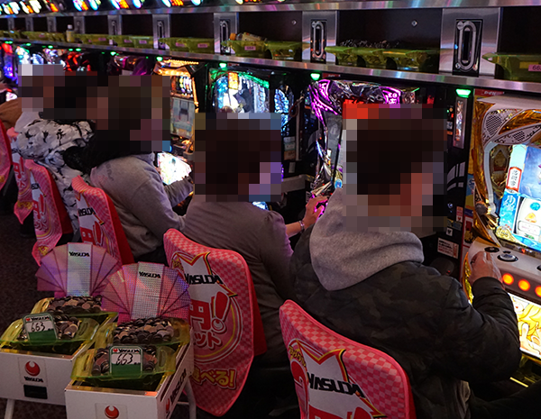 15時頃の4円パチンコにおいては、「ぱちんこCR真・北斗無双」と海物語シリーズがとくに盛況。理想的な展開となっているためか、プレイヤーたちは明るい表情でハンドルを握っていた。