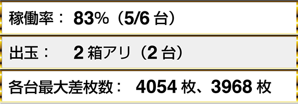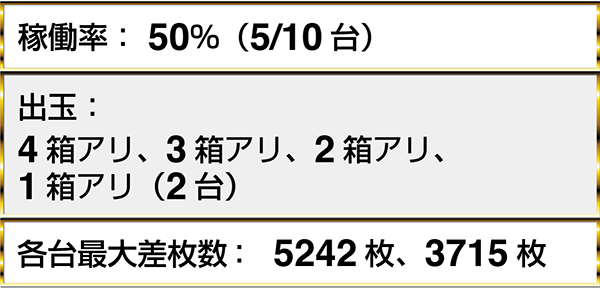 取材時にもっとも多かった出玉は、『沖ドキ!』の4箱。