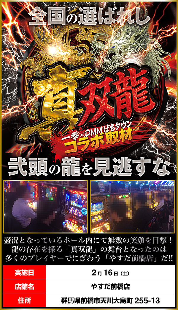 龍の存在を探るなかで、大きなにぎわいを体感した「やすだ前橋店」。イキイキとした表情で遊技を楽しむプレイヤーたちの姿など、たくさんの素敵なシーンを目撃している。