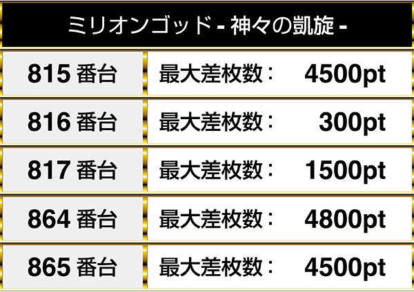 『ミリオンゴッド-神々の凱旋-』において、2台が並んで4000ptを突破しているデータを目撃!