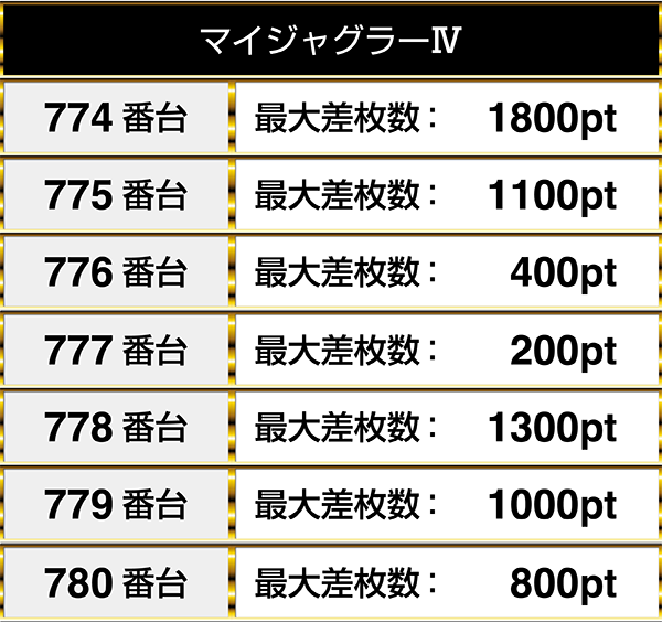 8台が設置されている『マイジャグラーⅣ』では、7台がかたまってプラスptを記録!!