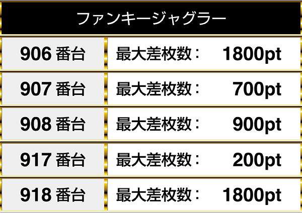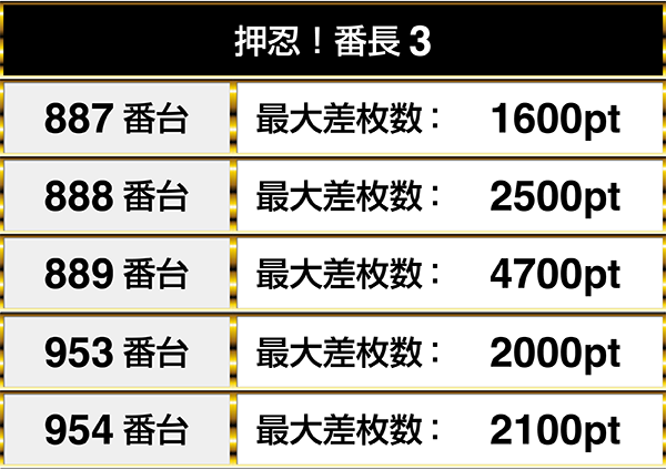 3台が並んでプラスptを記録している場所を確認。なかには、4000ptを越えているデータもみることができた。