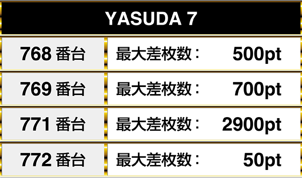 『YASUDA 7』にもプラスptのデータが並び、機種全体では5台中4台がプラス域でこの日を終えていた。