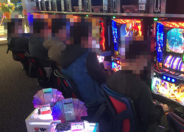 伝説級の光景を求めてパチスロコーナーに足を踏み入れると、大勢のプレイヤーが活躍をする華やかな光景が広がっていた。