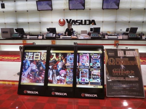 設置機種や貸し玉料金など、シマの特徴をあらわしたのぼりやラベルといった、見た目にも楽しく、わかりやすい空間が作られていた「やすだ前橋店」。