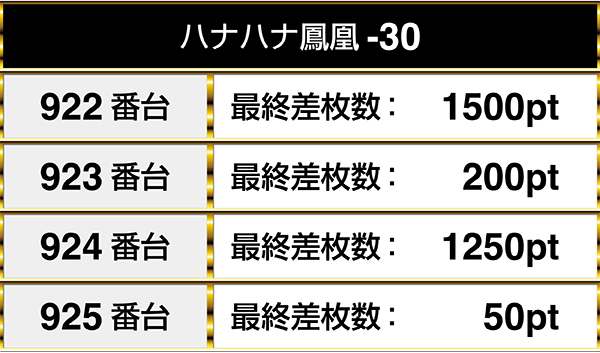 訪れた時間帯にイキイキとした表情でレバーを叩く姿がみられた「ハナハナ鳳凰-30」でも、最終的に3台が並んでプラスptを記録!