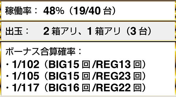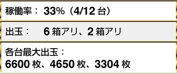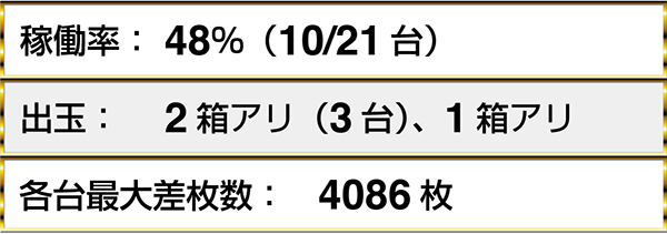 『押忍!番長3』や『バジリスク~甲賀忍法帖~絆』など、3機種以上で4000枚overのデータを確認している。