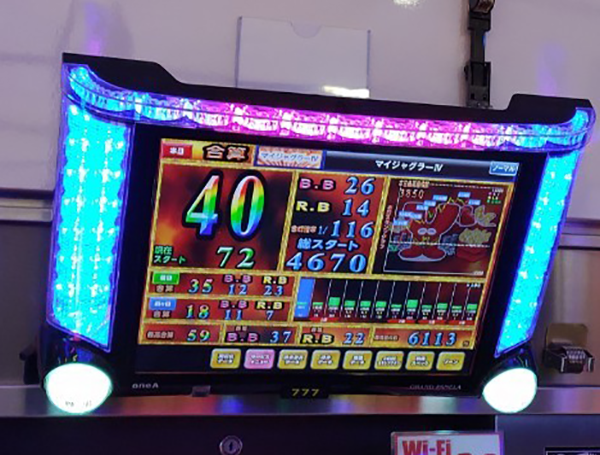 8台設置の『マイジャグラーⅣ』は、18時の時点で3台が40回以上のボーナスに当選。