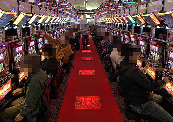 にぎやかな状況となっており、盛り上がるパチスロコーナーのなかでもひときわ目立つ場所であった。