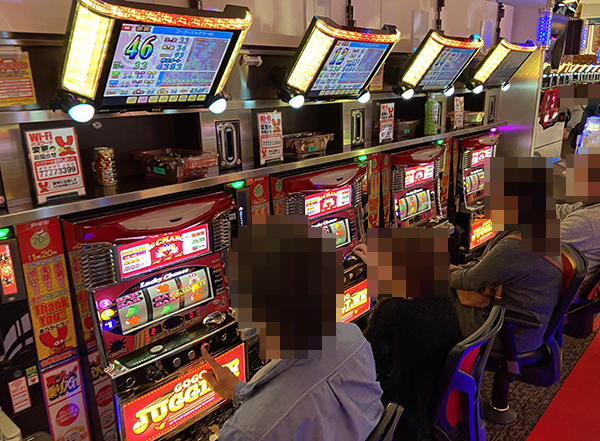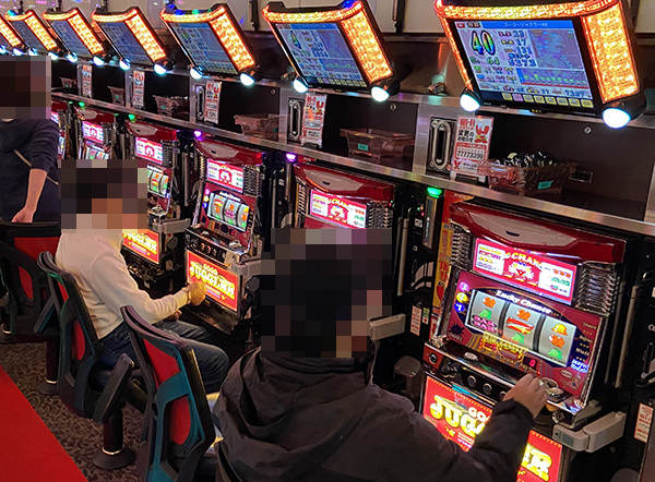楽しそうに遊技をおこなっているプレイヤーが多く、主役級の存在感を放っていたのが『ゴーゴージャグラー』!