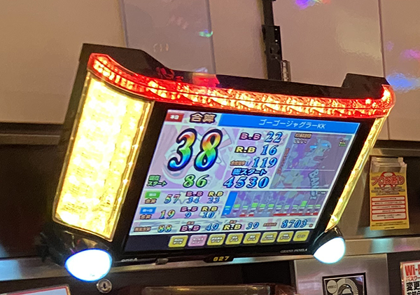 4774Gを消化した時点で44回のボーナスに当選している台やボーナス合算確率が設定6の近似値となっている台も確認済みだ。
