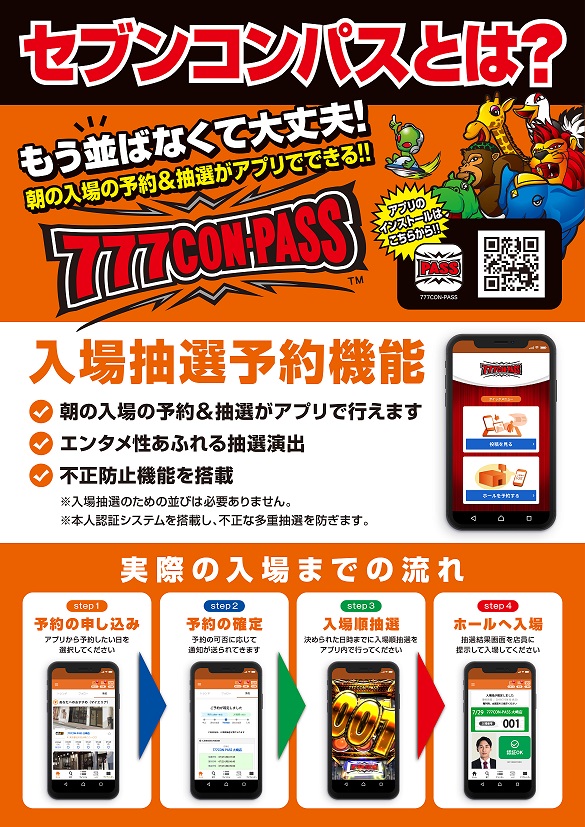 ※抽選入場の場合有り、抽選入場をご希望のお客様は「777CON-PASS」アプリのダウンロードを行って下さい♪ |