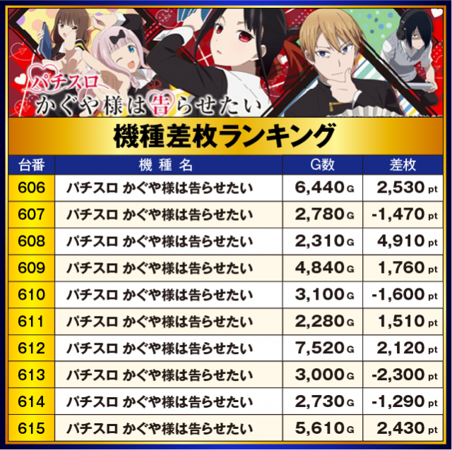 Super D’STATIONガーデン前橋店 差枚ランキング(7月2日)