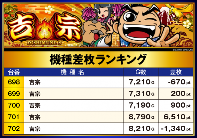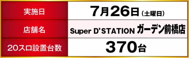 Super D’STATIONガーデン前橋店 差枚ランキング(7月26日)