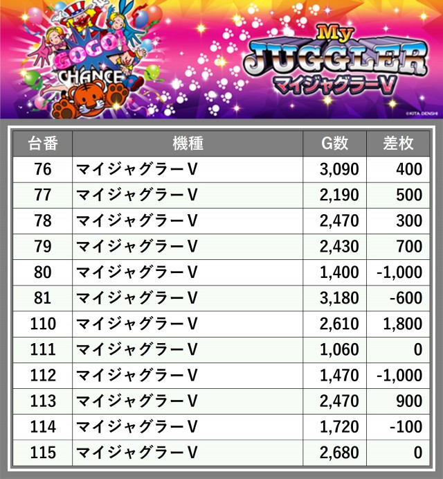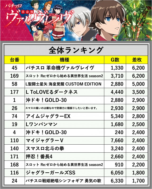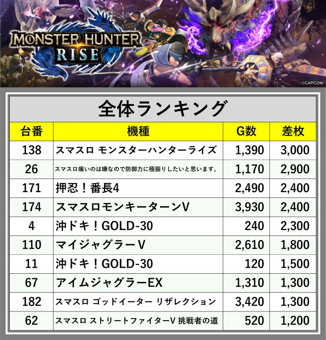 厳選された取材対象機種をはじめ、その他スロット全体から好記録が飛び出した!プレイヤーが楽しんだ1日を下記データにて振り返ってみて欲しい。