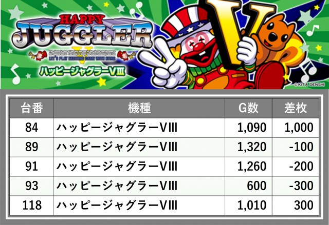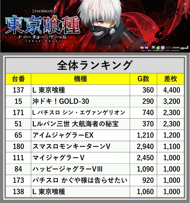 厳選された取材対象機種をはじめ、その他スロット全体から好記録が飛び出した!プレイヤーが楽しんだ1日を下記データにて振り返ってみて欲しい。
