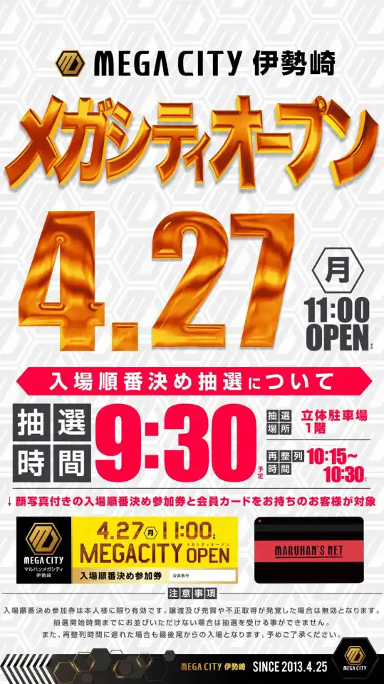 本日4月27日(月)メガシティオープン!!