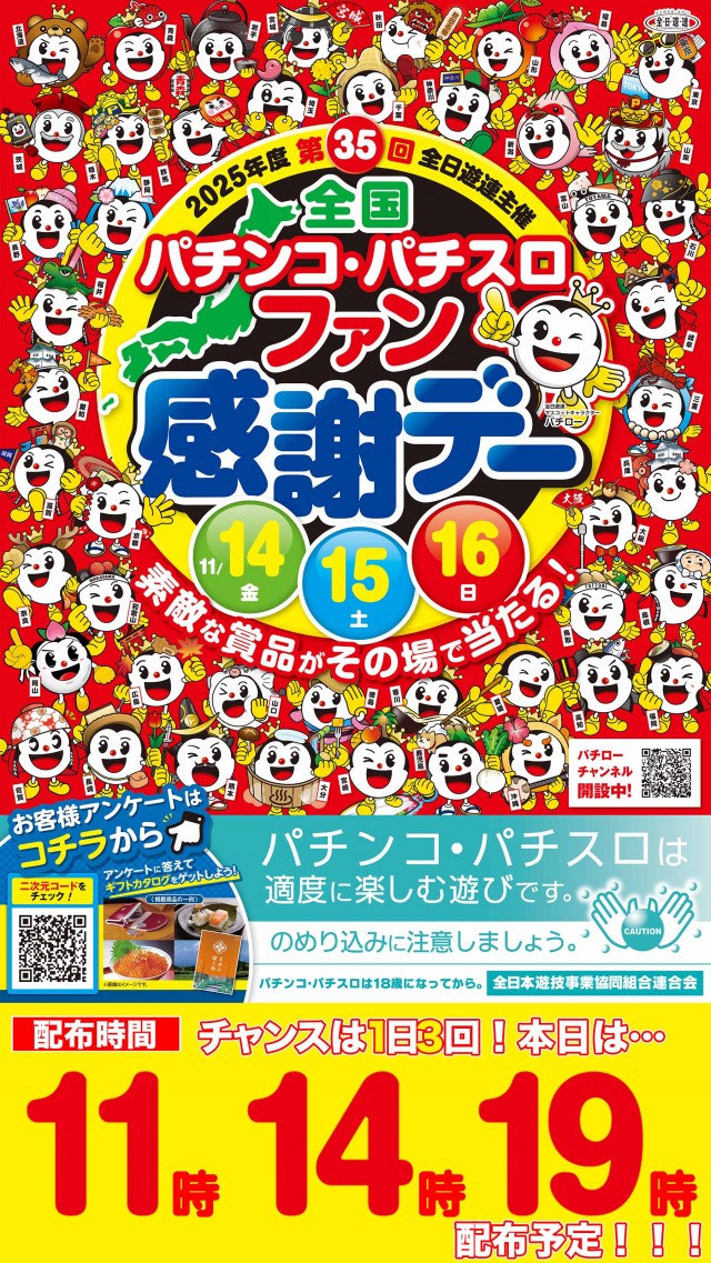 遊ぶぞ週末!11月16日(日)全国ファン感謝デー!