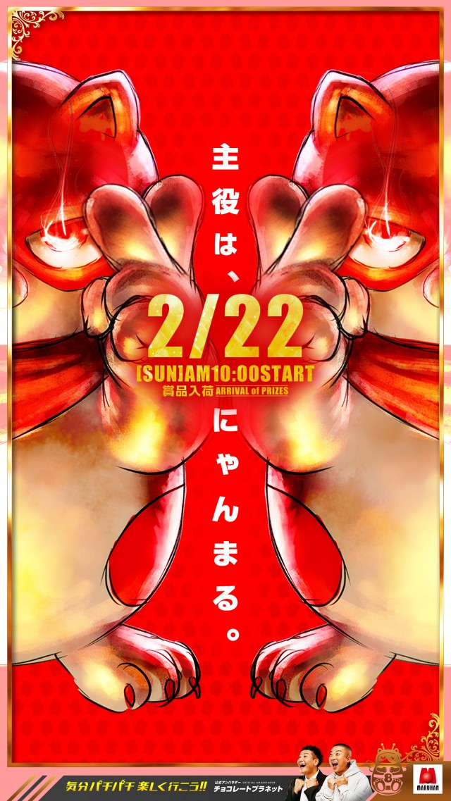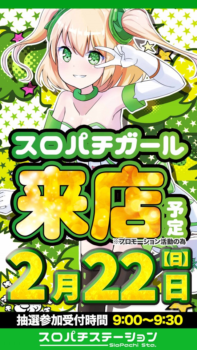 2月22日(日)朝10時オープン! スロパチガール来店予定!