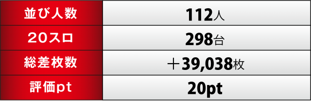 今回、21.73スロの全台トータル差枚数は+39,038枚と快勝に成功。また、上記の項で表を挙げ紹介した台以外にもドル箱使用、しかも複数積んでいる台を数多く目撃。多くの台で勝機に恵まれた一日だったと言えよう。