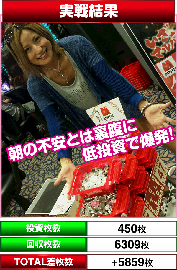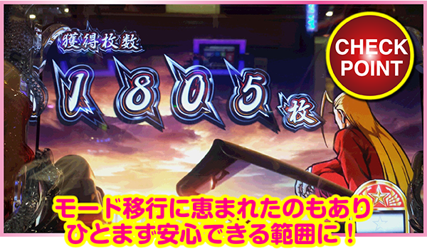 その後の台移動も成功だったのか、設定よりもヒキの部分で助けられた部分もありますが、なによりボーナス当選に関してMAXでも201G~300Gと大きなハマりがなく、モード移行・天国移行を考えると設定の面でも悪くなかったのではないかと。